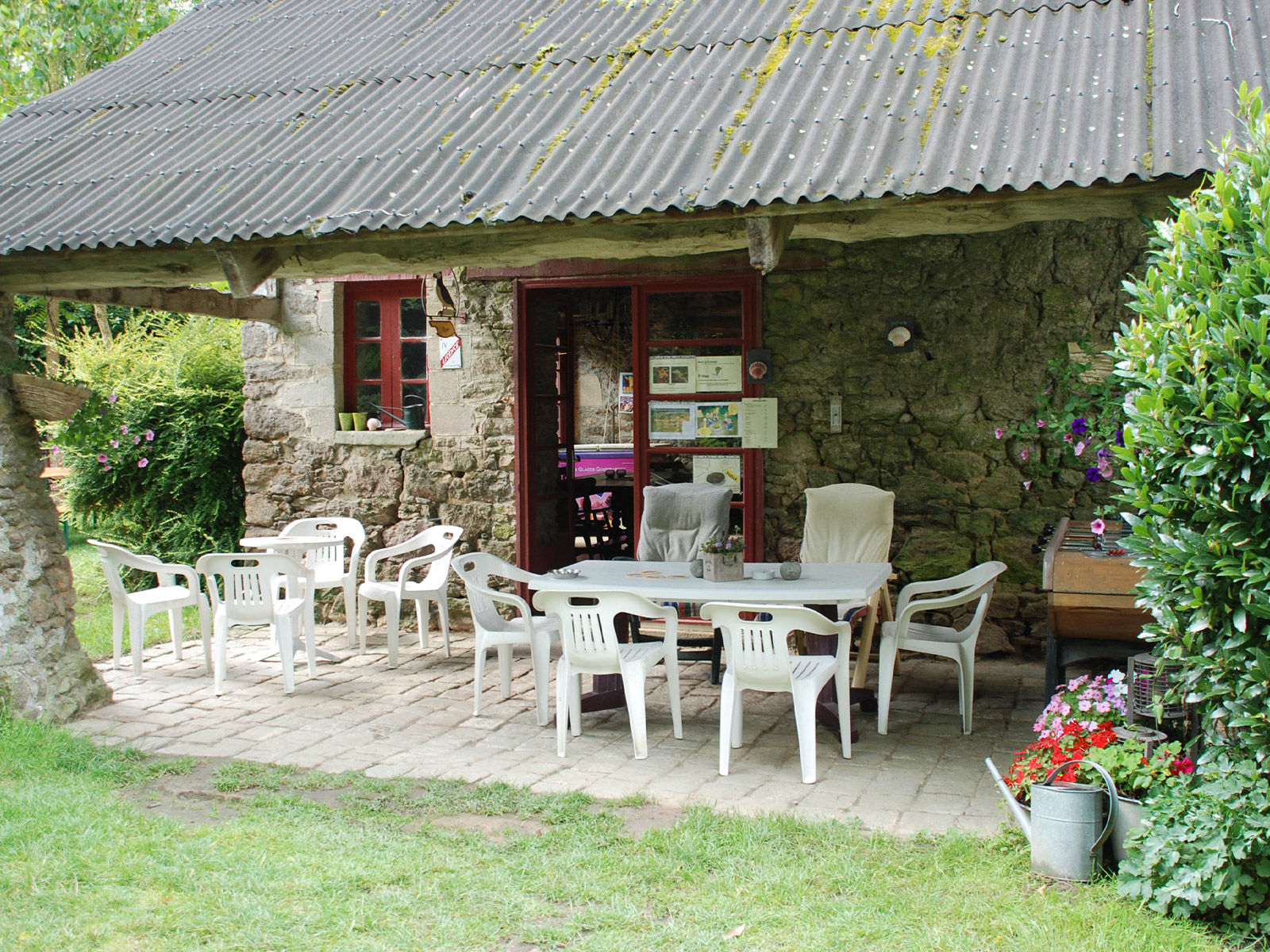 Dans l’ancienne ferme, nous avons aménagé la réception et le bar/foyer avec sa terrasse agréable, c’est le point central du camping où vous y trouverez la piscine, l’aire de jeux et d’activité. C’est ici que nous nous retrouvons autour d’un feu de camp chaque samedi soir.