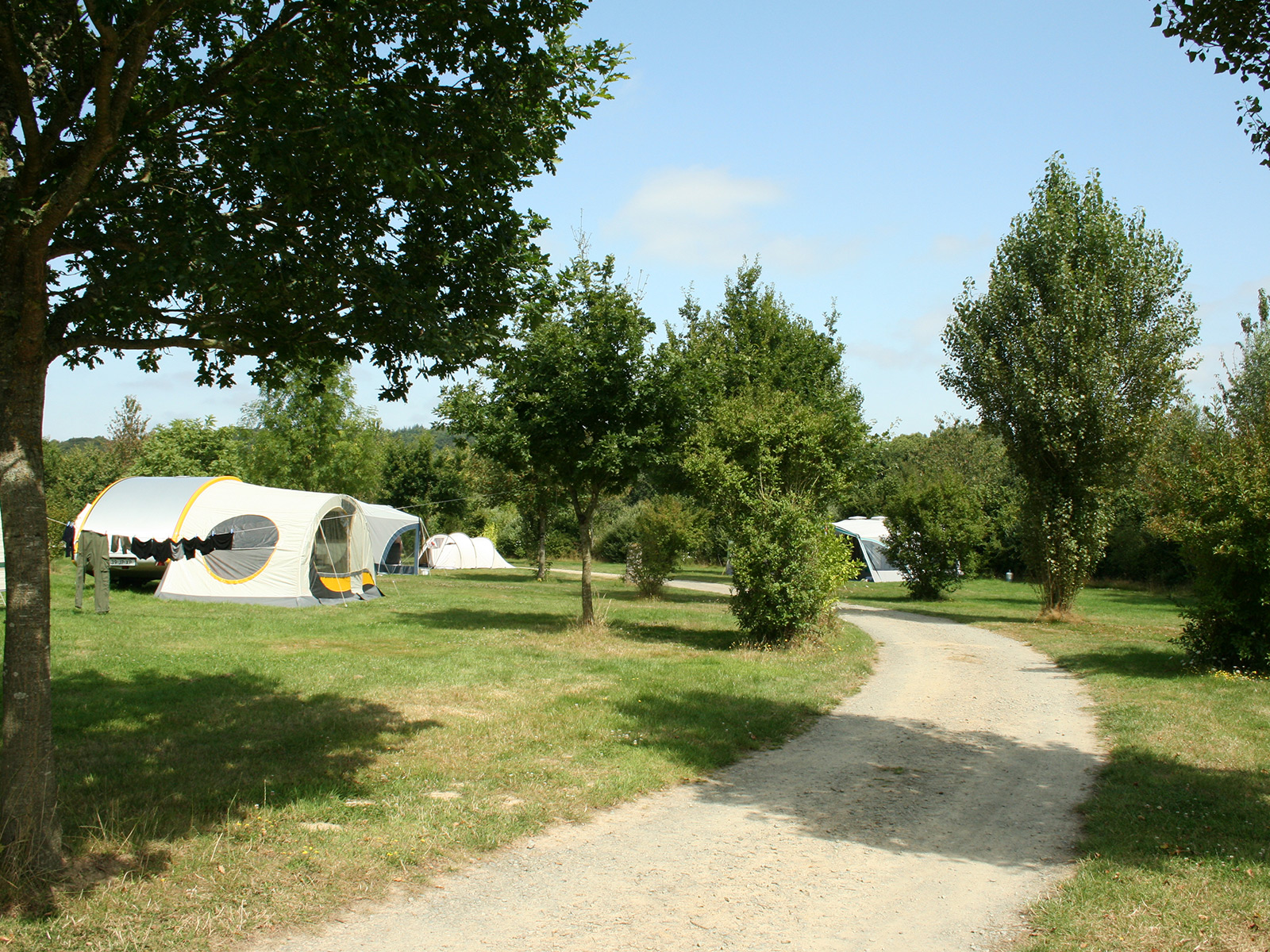 Nos emplacements sont dispersés en cercles autour d’un bloc sanitaire. Chaque cercle a trois points d’eau, donc vous n’êtes jamais loin.
